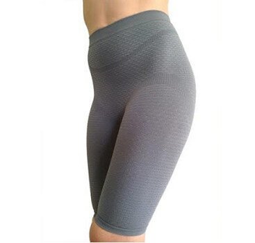 Designed to help alleviate the symptoms associated  cellulite, lymphedema, lipedema, our Bioflect® Infrared Micromassage Treatment Compression Shorts are made from a proprietary FIR therapy fabric, with everlasting earth minerals woven into the DNA of the fabric. The fabric reflects the body’s energy back to the body in the form of infrared, helping to boost slugglish circulation. Our garments are woven with a 3D micromassaging ripple knit that further boosts circulation through diversified pressure points along the skin. Our compression shorts are powered by a combination of advanced micromassage knitting, compression technology , and FIR therapy material that retains its healing benefits for the lifetime of the garment. Garments can be useful for lymphedema, lipedema, POTS, CRPS, EHD management. Proprietary knit molds to the body and odd shaped limbs, and supports painful heavy lipedema legs.