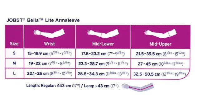 The Jobst Bella Lite Armsleeve is ideal for milder lymphedema and swelling or as a preventative sleeve. This comfortable sleeve features an optional large 2 inch silicone top band for maximum hold to prevent slippage.