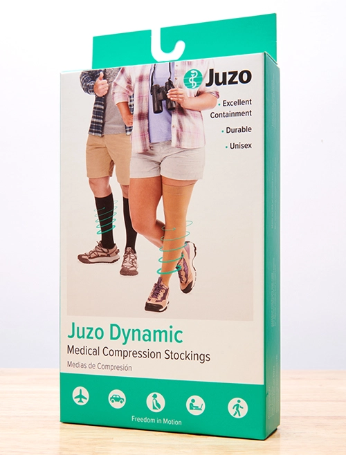Juzo Dynamic thigh-high medical compression stockings help you live an active life more comfortably. With a high degree of containment, they deliver firm therapeutic compression to help manage swelling (edema) caused by Lipedema, Lymphedema and advanced Venous Disease. Juzo Dynamic is durable and stays in place, even during physical activity.