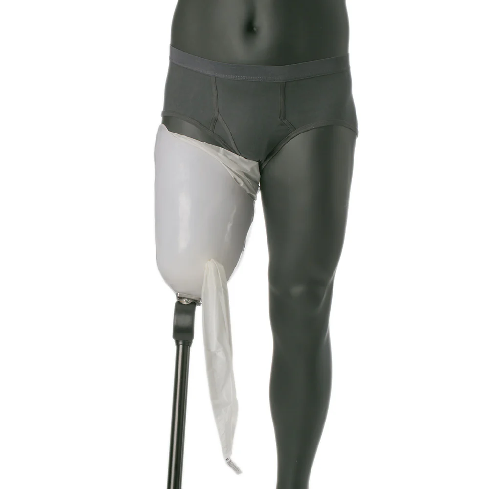 Power Pull Donning Sock is a prosthetic aid used by amputees with suction socket suspension systems to assist with donning their prosthetic leg.