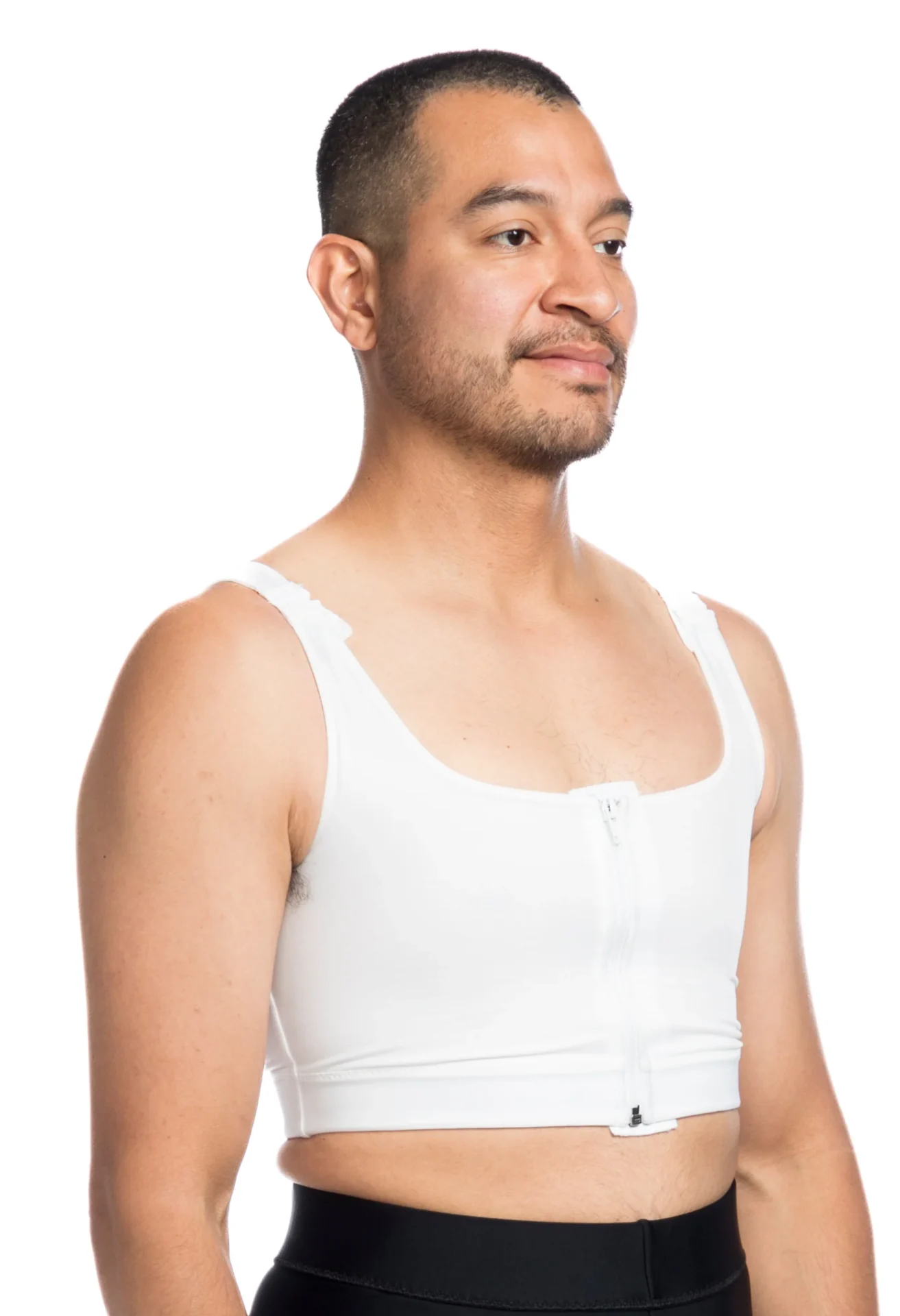 Wear Ease Compression Vest for men is ideal for chest procedures such as male breast cancer surgery, male chest reconstruction, gynecomastia treatment and cardiovascular/thoracic surgery.